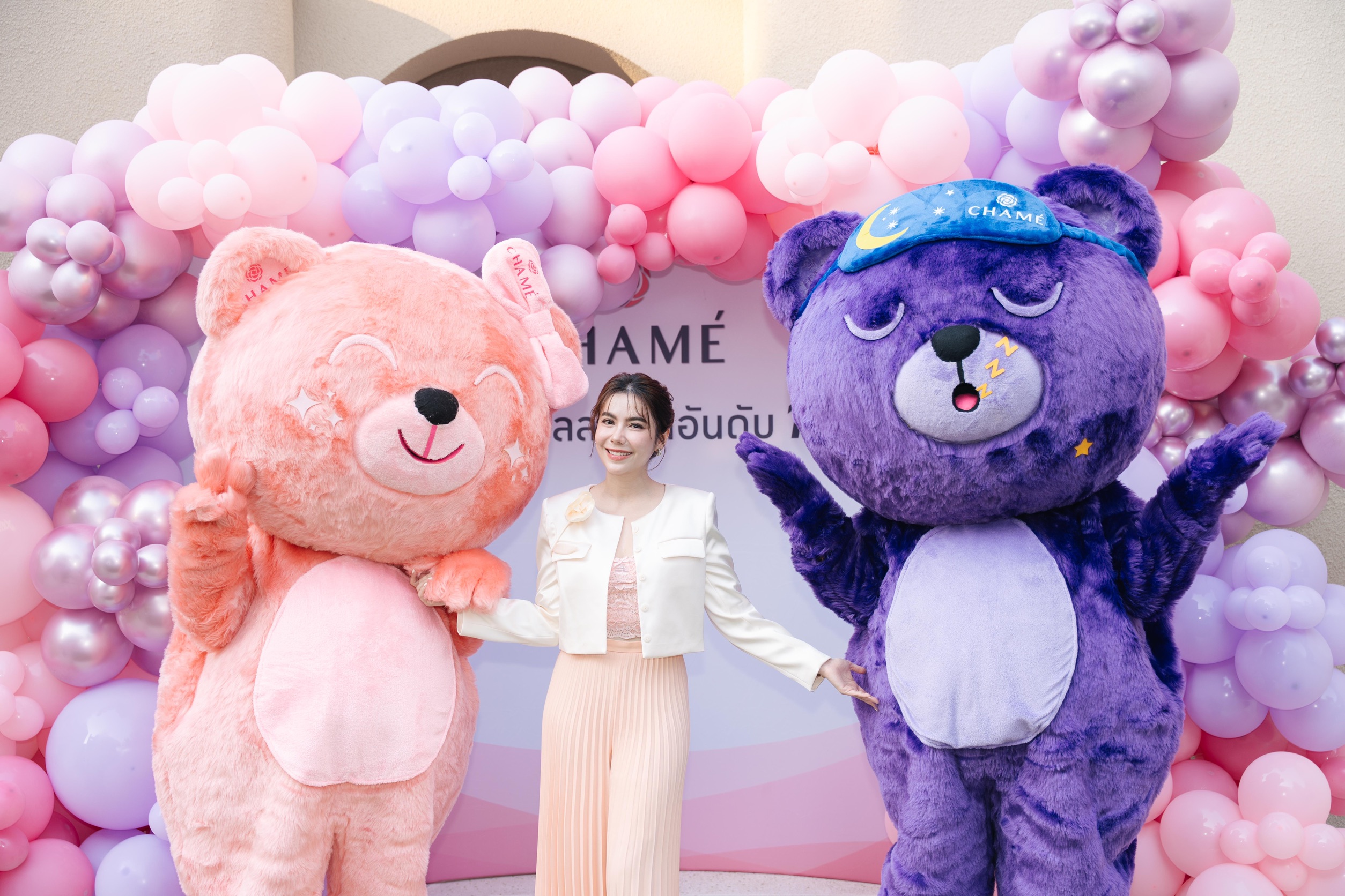ด้วยนิยามความงามที่ไม่ได้หยุดอยู่เพียงแค่ผิวพรรณ แต่ยังสะท้อนถึงความสดใสและพลังบวกในทุกโมเมนต์ ทำให้งาน “Dream Prince Moment Charm of Chame’” ณ The Cloud Bangkok เต็มไปด้วยบรรยากาศสุดคึกคัก ซึ่งมีน้องหมีม่วงและน้องหมีชมพูจากชาเม่มาร่วมสร้างสีสันภายในงาน ส่งมอบรอยยิ้มให้กับแฟนคลับกว่า 100 คน ที่มาร่วมสนุกกับกิจกรรมพิเศษ ท่ามกลางเซอร์ไพรส์และช่วงเวลาแห่งความประทับใจร่วมกัน จากนั้นเพิ่มดีกรีความฟินเกินต้าน เมื่อ “เก่ง-น้ำปิง” ควงคู่กันร้องเพลงโชว์พร้อมร่วมกิจกรรมกับแฟนคลับอย่างใกล้ชิดและเป็นกันเอง ที่สำคัญยังได้รู้เคล็ดลับการดูแลสุขภาพและผิวพรรณจากผลิตภัณฑ์ Chame’ Collagen Plus คอลลาเจนตัวแม่สูตรคลาสสิก และ Chame’ Collagen SparkZa คอลลาเจนซ่า รสองุ่น! และ Chame’ Aurora Night Shot คอลลาเจนเพื่อสุขภาพดื่ม ก่อนนอนผ่อนคลาย และไฮไลต์ไอเทมเด็ด Chame’ Collagen Gummy กัมมี่หมีเคี้ยวเพลิน ไม่มีน้ำตาล เติมคอลลาเจนให้ผิวแบบไม่ต้องชง สดใสออลเดย์ ส่วนคนหลับยากต้อง Chame’ Daily Night Gummy กัมมี่หมีรสแบล็กเบอร์รี่ ไม่มีน้ำตาล เคี้ยวก่อนนอนช่วยให้ร่างกายผ่อนคลาย หลับสบายแบบฝันดีออลไนท์