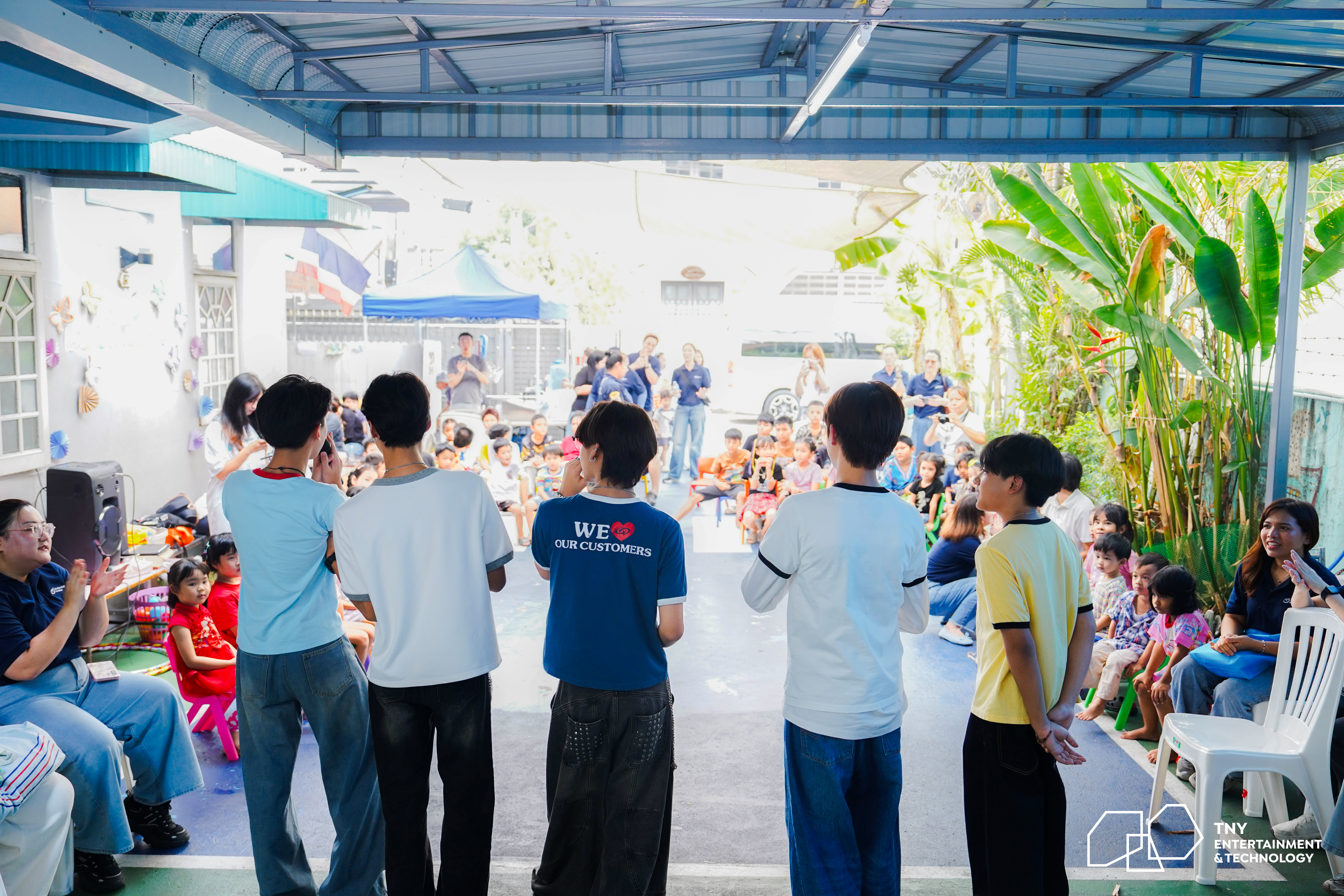 นอกเหนือจากการมอบสิ่งของ ทั้ง 5 หนุ่มยังได้ตั้งใจเตรียมโชว์พิเศษ เพื่อเติมเต็มบรรยากาศด้วยเสียงหัวเราะและความสนุกสนาน สะท้อนถึงความตั้งใจในการ “ให้” ที่มากกว่าวัตถุ แต่คือการส่งต่อ “พลังใจ” อย่างแท้จริง