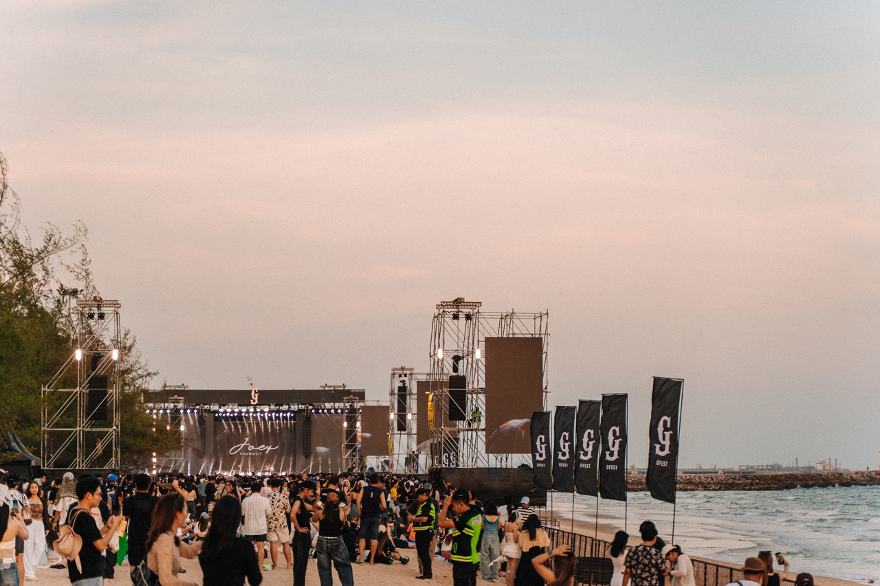 บรรยากาศภายในงานคึกคักตั้งแต่เข้าสู่พื้นที่งาน เหล่าชาวร็อกทยอยเดินทางมาจับจองพื้นที่หน้าเวทีกันอย่างหนาตา โดยปีนี้ทาง GFest ได้จัดเต็มจุดเช็กอินแลนด์มาร์คสุดเท่ ทั้งสัญลักษณ์กีตาร์ยักษ์ เรือและสมอเรือ บริเวณริมหาด ที่ออกแบบมาเพื่องานนี้โดยเฉพาะ ให้ทุกคนได้ถ่ายรูปเก็บความประทับใจ นอกจากนี้ยังมีกิจกรรมเอาใจแฟนเพลง ทั้งโซน AIRBRUSH TATTOOS ลายโลโก้วงที่ชื่นชอบ โซนพักผ่อน นวดแผนไทยบริการถักผม รวมไปถึงร้านอาหารที่คัดสรร ร้านเด็ด ร้านดัง มาเพื่อเติมพลังให้ชาวร็อกได้อิ่มอร่อยตลอดคืน
