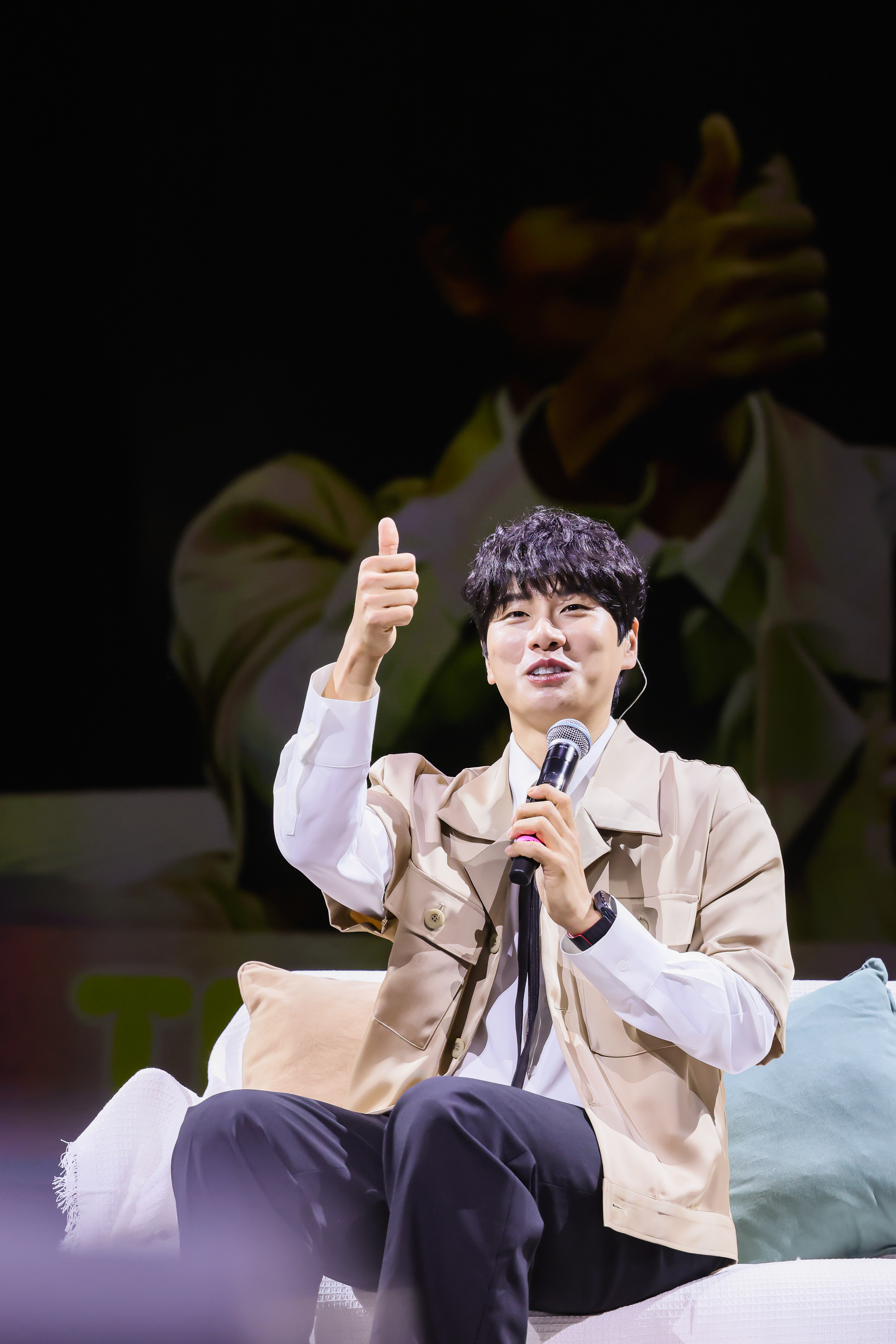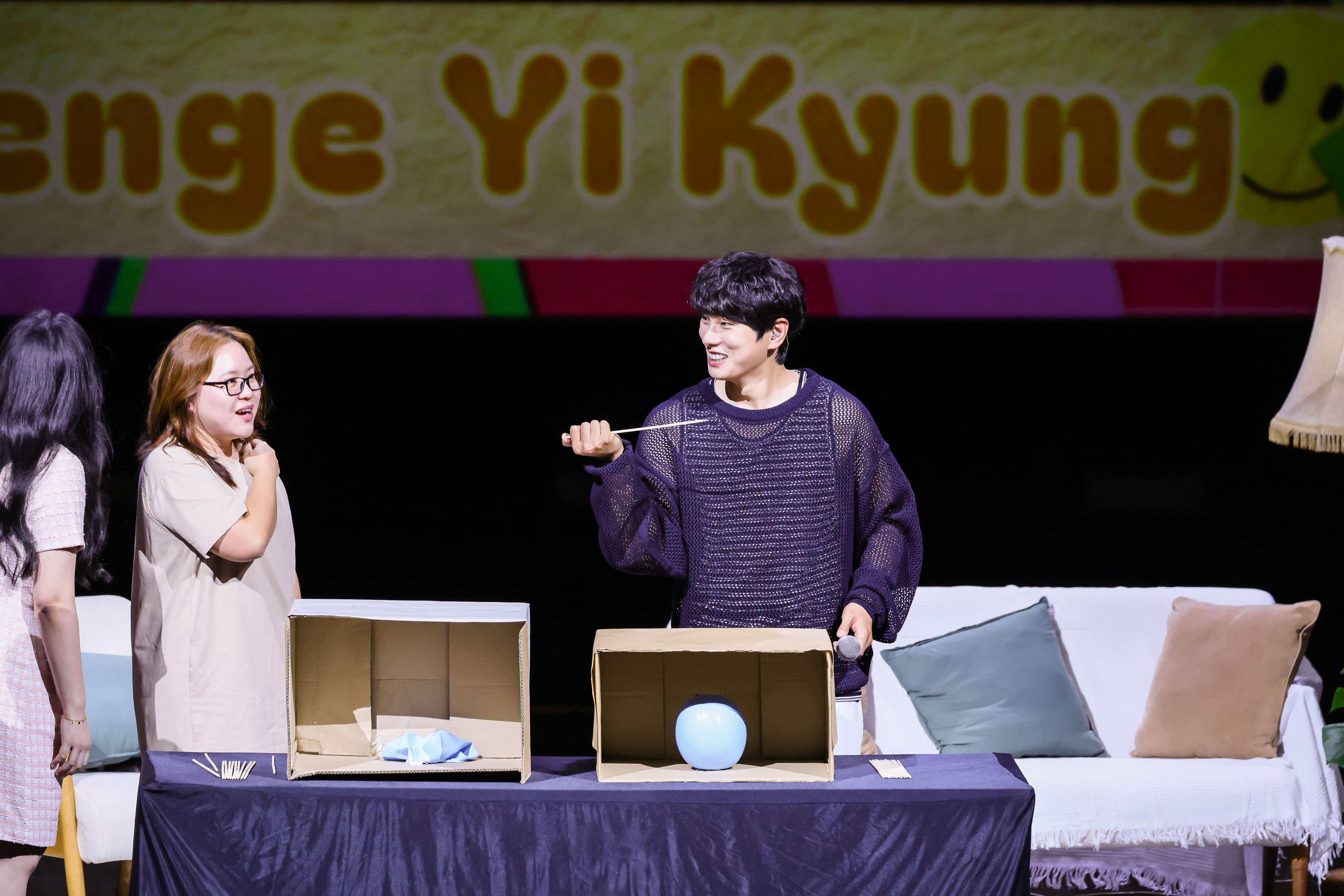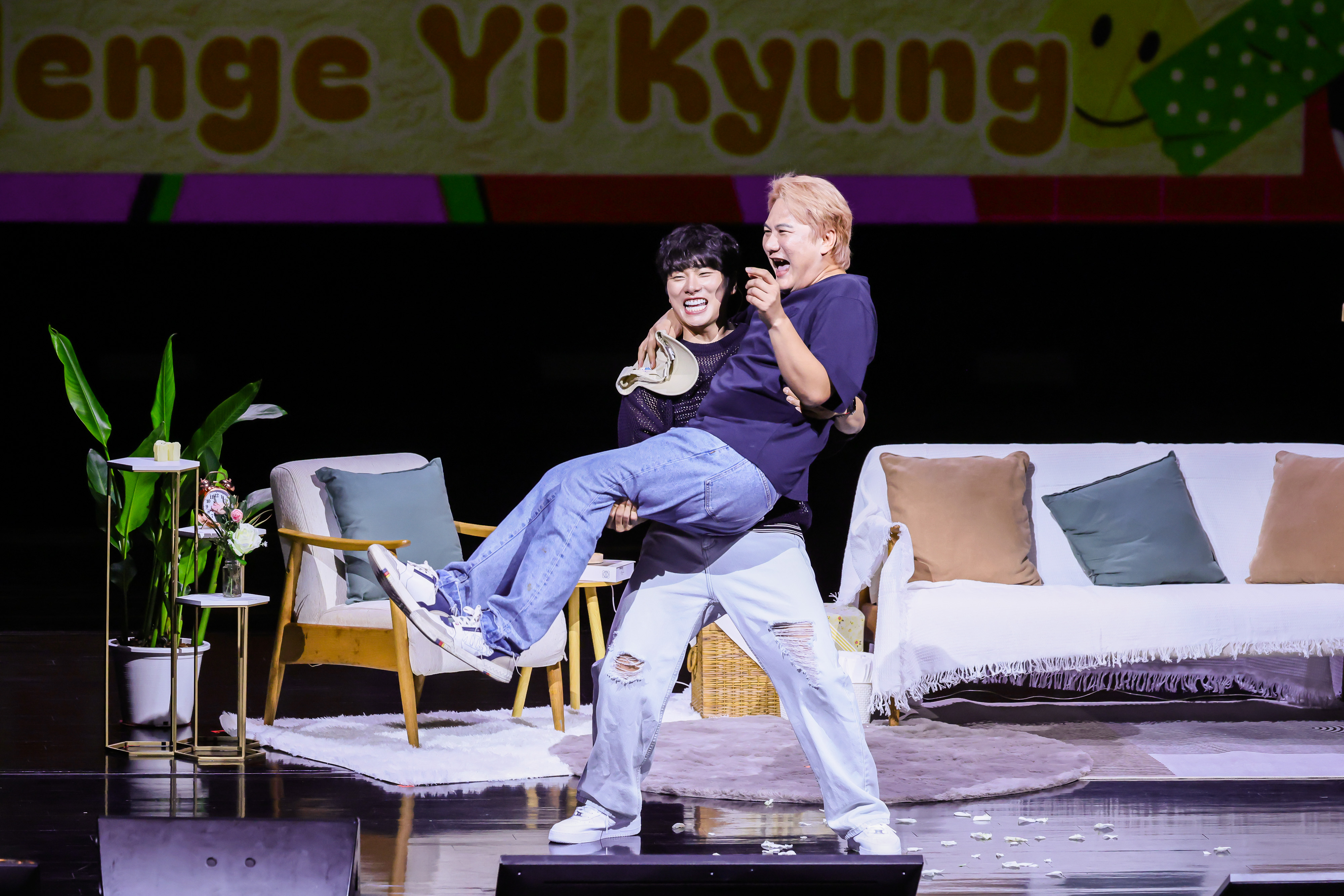 เจ้าของวลีสุดไวรัล ‘เควนชันนา~ เตงเตงเตงเตงเตง’ ปรากฏตัวบนเวทีพร้อมเพลง “With You Love” พร้อมกล่าวทักทายแฟนๆ อย่างเป็นกันเอง ก่อนจะพาทุกคนเข้าสู่ช่ วงเวลาแห่งความสนุกที่เต็มไปด้ วยรอยยิ้มและเสียงหัวเราะ ทันทีที่เริ่มพูดคุยอีอีคยองได้ เปิดใจถึงความรู้สึกที่ได้กลั บมาเจอแฟนๆ ชาวไทยอีกครั้ง พร้อมพูดถึงผลงานที่ทำให้เขาเป็ นที่รักของผู้ชมทั่วเอเชีย จากนั้นเข้าสู่กิจกรรมเล่นเกมสุ ดใกล้ชิด แฟนคลับผู้โชคดีที่ได้ขึ้นเวที มารับความฟินแบบเรียลไทม์ อีอีคยองเซอร์วิสแบบไม่มีกั๊ก แจกสะบัด! โดยเฉพาะของรางวัลที่ไม่ใช่แค่ สิ่งที่เตรียมมา แต่แถมให้! อุ้มแฟนคลับถ่ายรูปจนหวีดเสี ยงแทบแหบกันทั้งงาน
