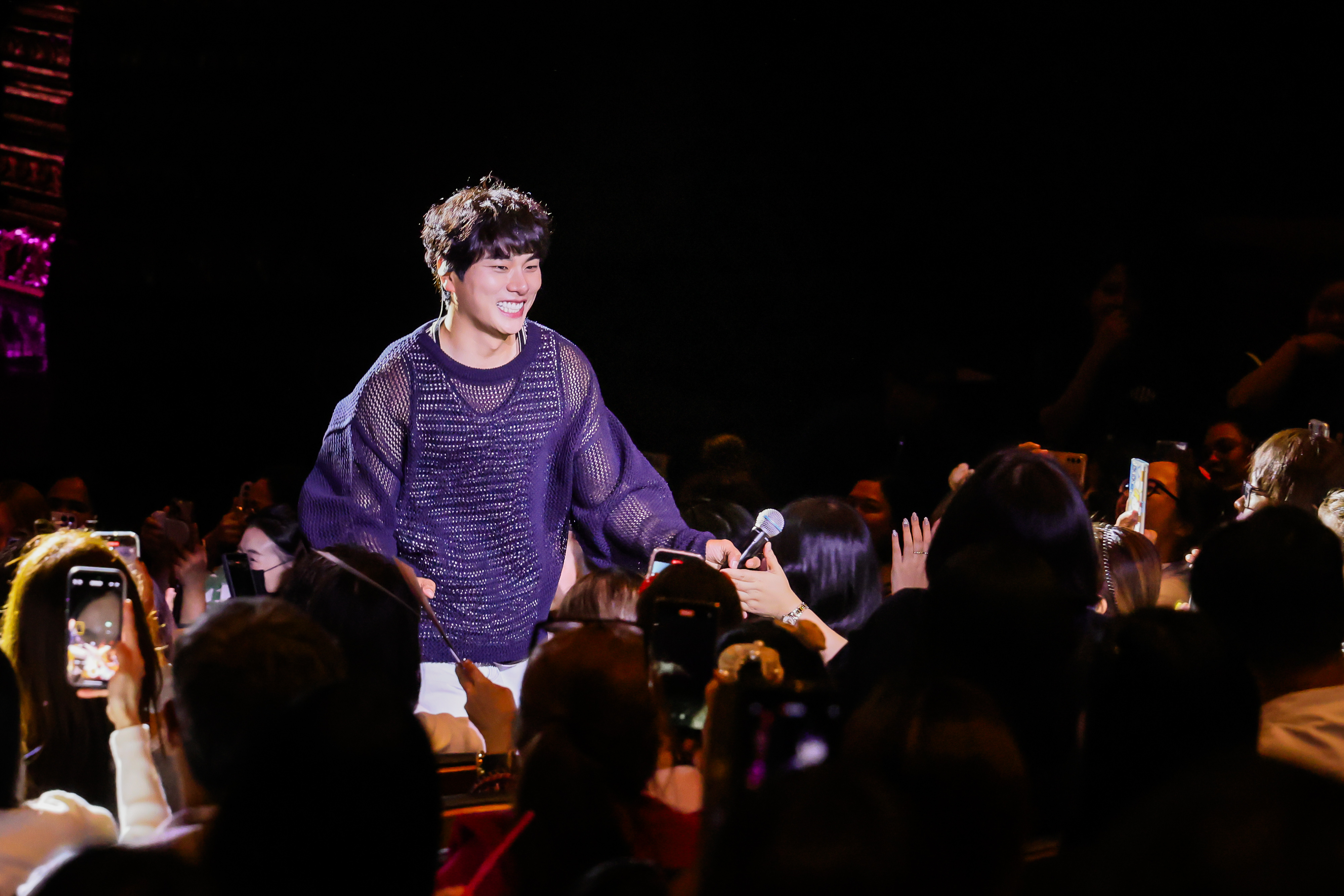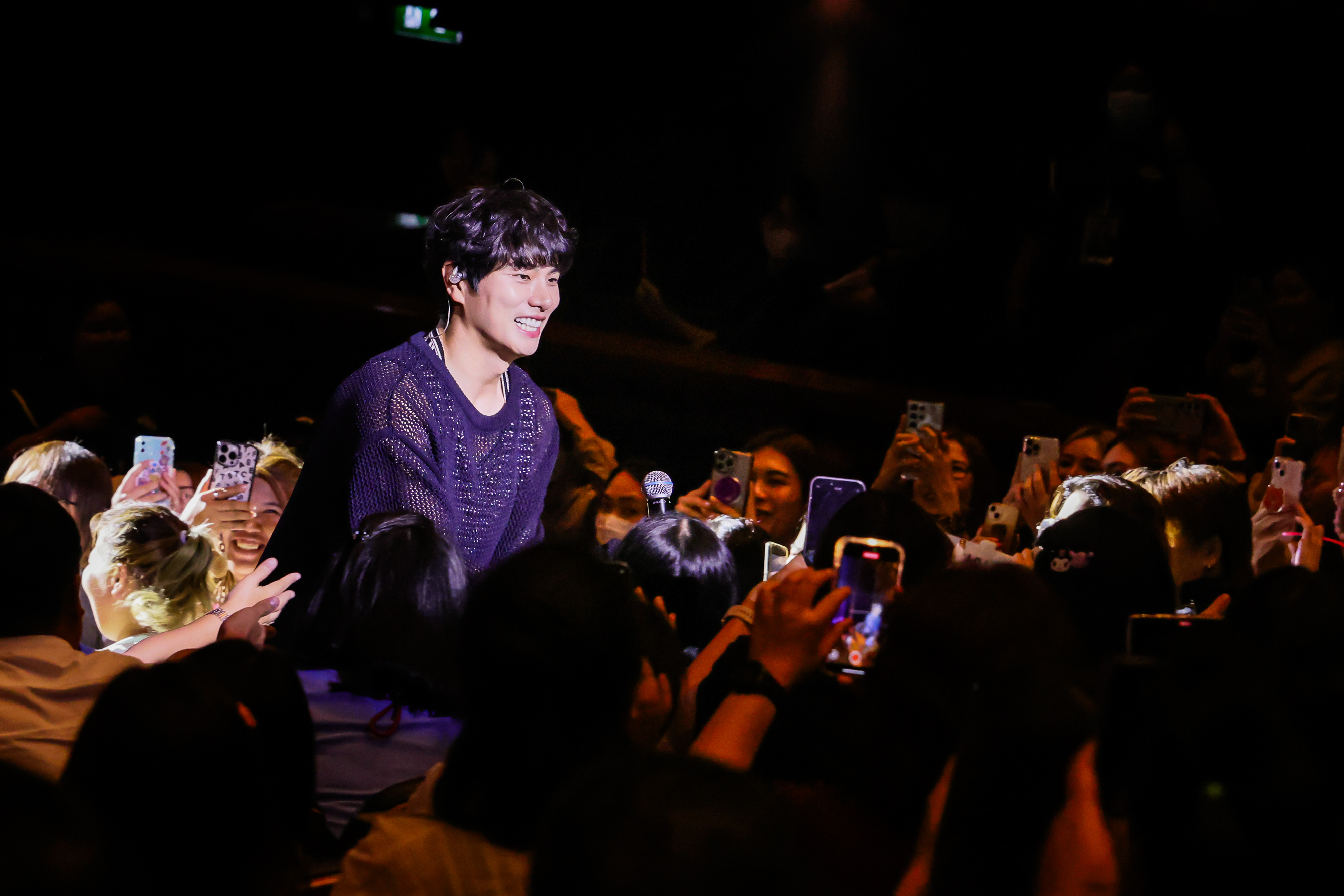 หนึ่งในช่วงเวลาที่อบอุ่นใจที่ สุด คือโมเมนต์ที่อีอีคยองมอบของขวั ญสุดพิเศษ “กระเป๋าผ้าลายดอกทานตะวัน” ที่เจ้าตัวลงมือวาดด้วยตั วเองเป็นของขวัญชิ้นเดี ยวในโลกที่มาจากความตั้งใจจริง เพื่อมอบให้แฟนคลับที่อายุน้ อยที่สุดในงาน แต่ฟิลเตอร์ความน่ารักของอีอี คยองยังไม่หมดเพียงเท่านั้น! เขายังเตรียมเซอร์ไพรส์แฟนๆ ชาวไทยด้วยการร้องเพลง “พี่ชอบหนูที่สุดเลย” เพลงไทยสุดน่ารักที่เจ้าตั วเผยว่าใช้เวลาฝึกซ้อมนานถึง 1 เดือนเต็ม เพื่อตอบแทนความรักจากทุ กคนและทำตามคำขอที่เคยส่งตรงถึ งเขา เห็นความตั้งใจและความทุ่ มเทของเขาทำเอาแฟนๆ ในฮอลล์พร้อมใจกันปรบมือและส่ งเสียงกรี๊ดดังลั่น