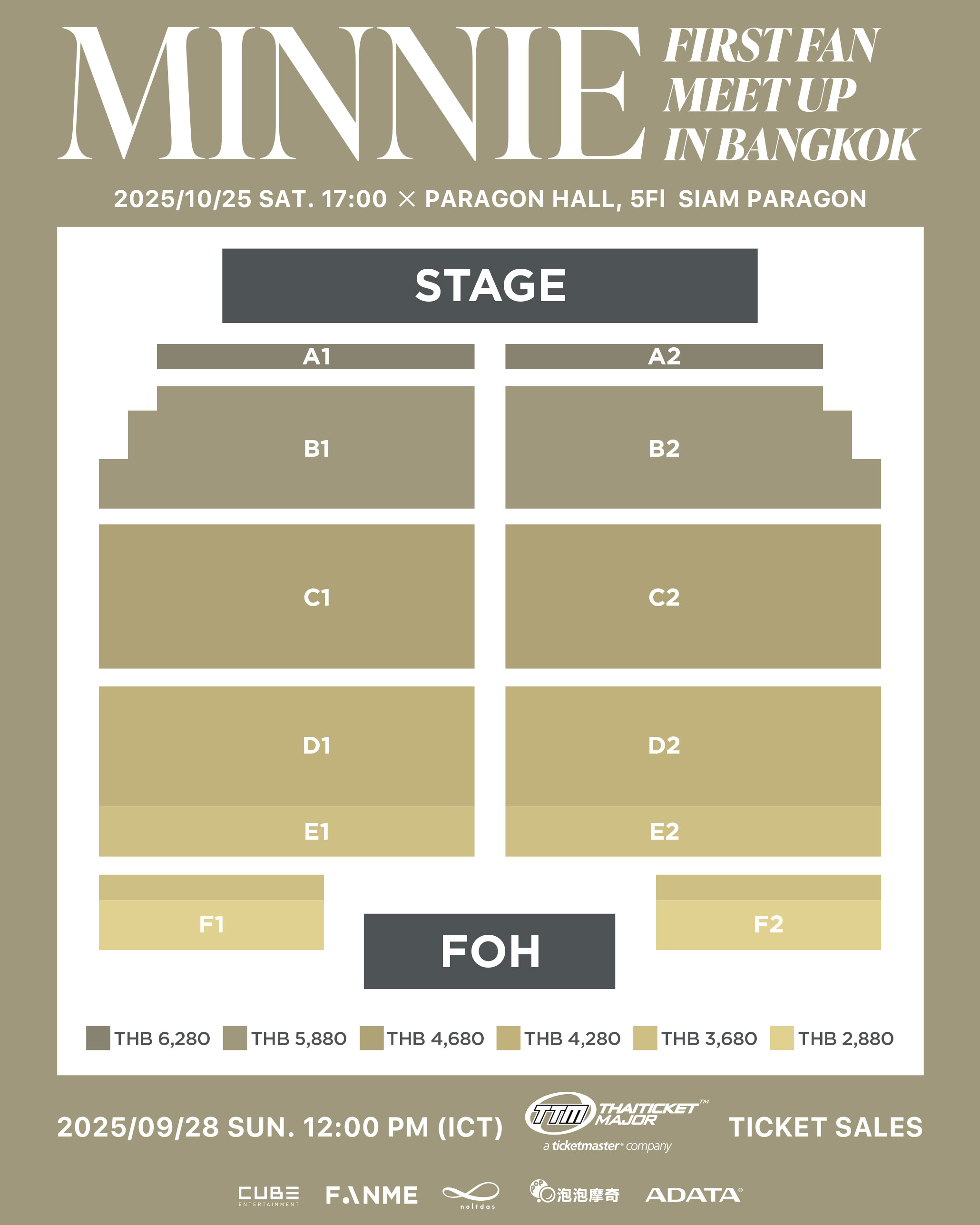 งานนี้เปิดจำหน่ายบัตรวันอาทิตย์ที่ 28 กันยายน 2568 เวลา 12.00 น. เป็นต้นไป ทาง www.thaiticketmajor.com ราคาบัตร 6,280 / 5,880 / 4,680 / 4,280 / 3,680 และ 2,880 บาท ลุ้นรับเบเนฟิต อาทิ Thailand Exclusive Photo Card , Hi-Touch , Signed Poster , Soundcheck , Signed Album และ Group Photo สามารถติดตามรายละเอียดเพิ่มเติมได้ที่ IG: fanme.official / FB:FANME และ X:@official_fanme