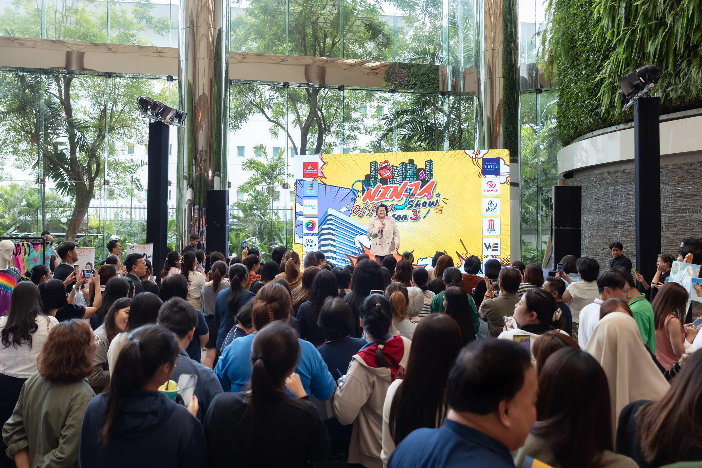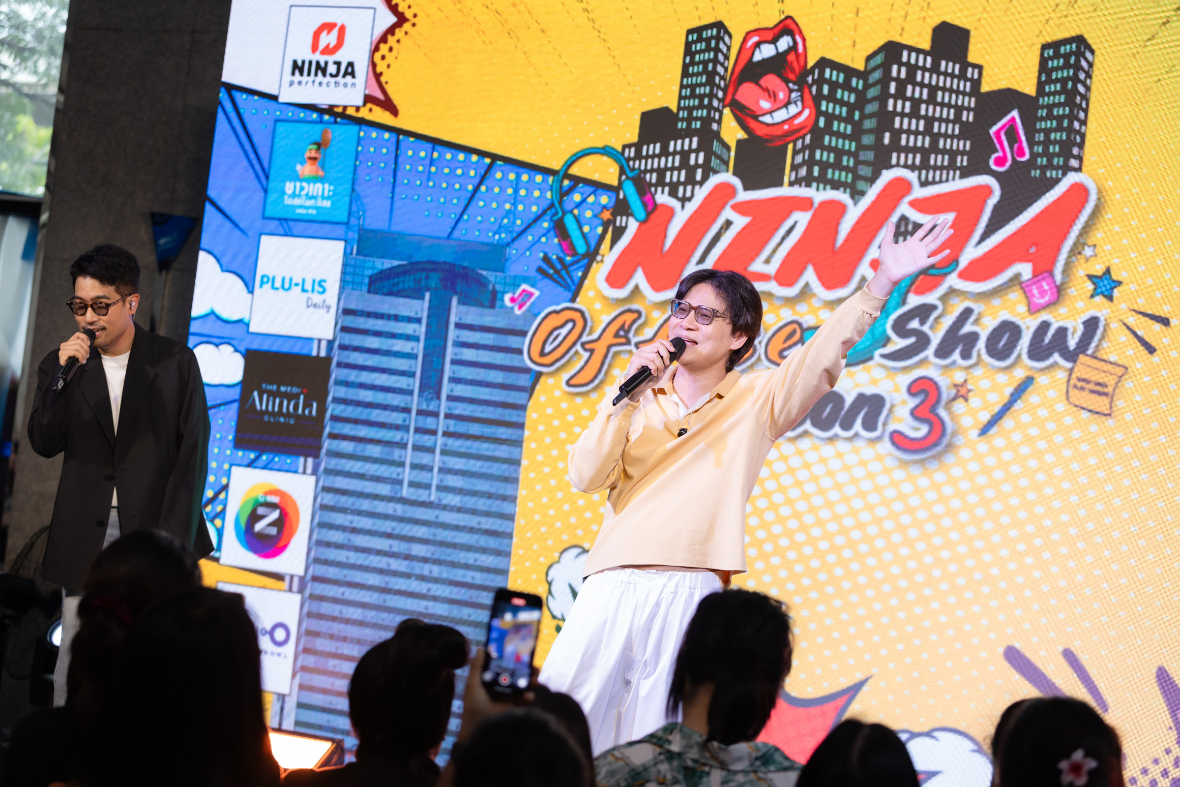 บริษัท นินจา เพอร์เฟคชั่น จำกัด จัดกิจกรรม “นินจา ออฟฟิศ โชว์ ซีซัน 3” ส่งท้ายเดือนกันยายนอย่างอบอุ่นใจ มอบความสุขและพลังบวกให้กับหนุ่มสาวชาวออฟฟิศ ด้วยมินิคอนเสิร์ตจากศิลปินคุณภาพ ได้แก่ ลิปตา ศิลปินคู่ดูโอแนวอาร์แอนด์บีป็อป ที่ตึกสินสาธร และ เบน ชลาทิศ ศิลปินเสียงทรงพลัง ที่ตึกสินธร งานนี้ได้รับการตอบรับอย่างล้นหลามจากพนักงานออฟฟิศที่เข้าร่วม พร้อมรอยยิ้มและบรรยากาศที่เต็มไปด้วยความสุข