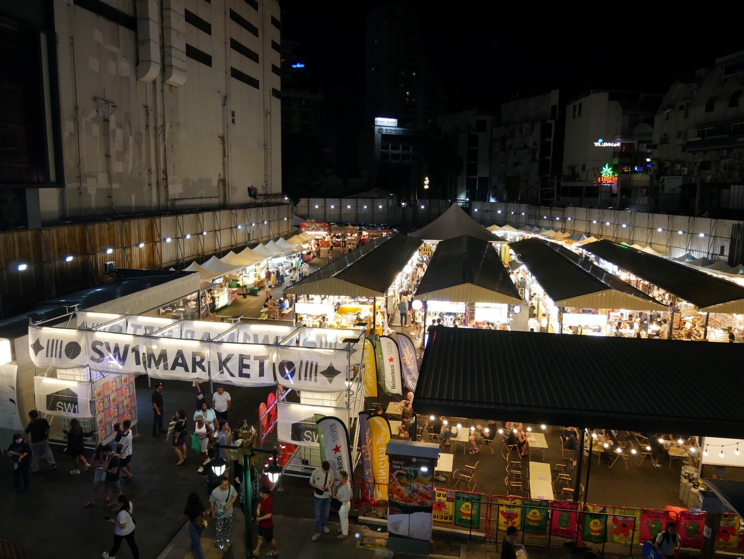 ในงาน คุณจะได้ลิ้มรสอาหารท้องถิ่ นและนานาชาติ จิบเครื่องดื่มเย็นๆ ฟังดนตรีสด พร้อมกิจกรรมครีเอทีฟที่มี เฉพาะในตลาดกลางคืนสไตล์ SW1