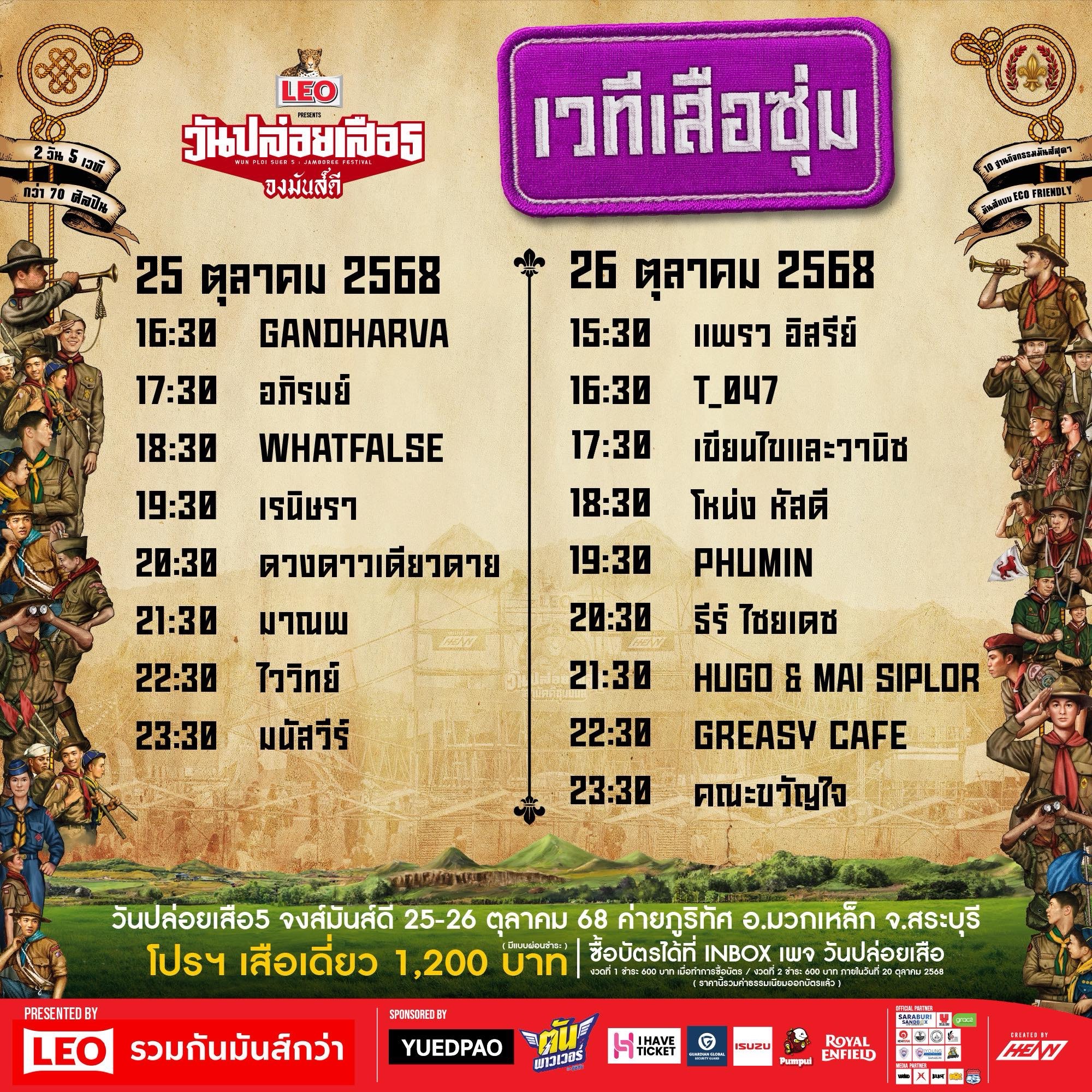 นับถอยหลังแล้วกับ งาน “วันปล่อยเสือ ปี 5 ตอน จงมันส์ดี” เทศกาลดนตรีในสไตล์ค่ายลูกเสือที่ยิ่งใหญ่ที่สุด โดย HEAVY ORGANIZER (เฮฟวี่ ออร์แกไนเซอร์) ผู้จัดเทศกาลดนตรีหลากหลายแนวสุดบ้าคลั่ง ที่ได้รับการรับรองให้เป็น GREEN HEAVY จาก เวที Climate Action Forum (CAF) โดย สหประชาชาติ นำโดย คุณบุรินทร์ทร แซ่ล้อ หรือ “เฮง โคตรอินดี้” ซึ่งในปีนี้ ภูมิใจนำเสนอความมันส์สุดยิ่งใหญ่กับ “LEO presents วันปล่อยเสือ ปี5 ตอน จงมันส์ดี” ครั้งแรกของเทศกาลดนตรีของคนไทยในแบบ ECO FRIENDLY เต็มรูปแบบ และเป็นเทศกาลดนตรีคาร์บอนต่ำงานแรกของคนไทย กับแนวคิด “ความมันส์” กับ “ความยั่งยืน” อยู่ร่วมกันได้ จัดเต็ม 2 วัน 5 เวที ได้แก่เวที เวทีถ้ำเสือ, เวทีกองไฟ, เวทีเสือคำราม, เวทีเสือซุ่ม และ เวทีเสือเล่นเปล่า พร้อมเพิ่มไลน์อัพกองทัพศิลปินจุใจครบทุกแนวกว่า 82 เบอร์ อัพดีกรีความมันส์กับอีก 2 เวที DJ สนุกไปกับ 10 ฐานกิจกรรม และวัฒนธรรมชนเผ่า บนพื้นที่จัดงาน 720 ไร่ ใน วันที่ 25 และ 26 ตุลาคม 2568 นี้ ณ ค่ายลูกเสือภูริทัศ อ.มวกเหล็ก จ.สระบุรี