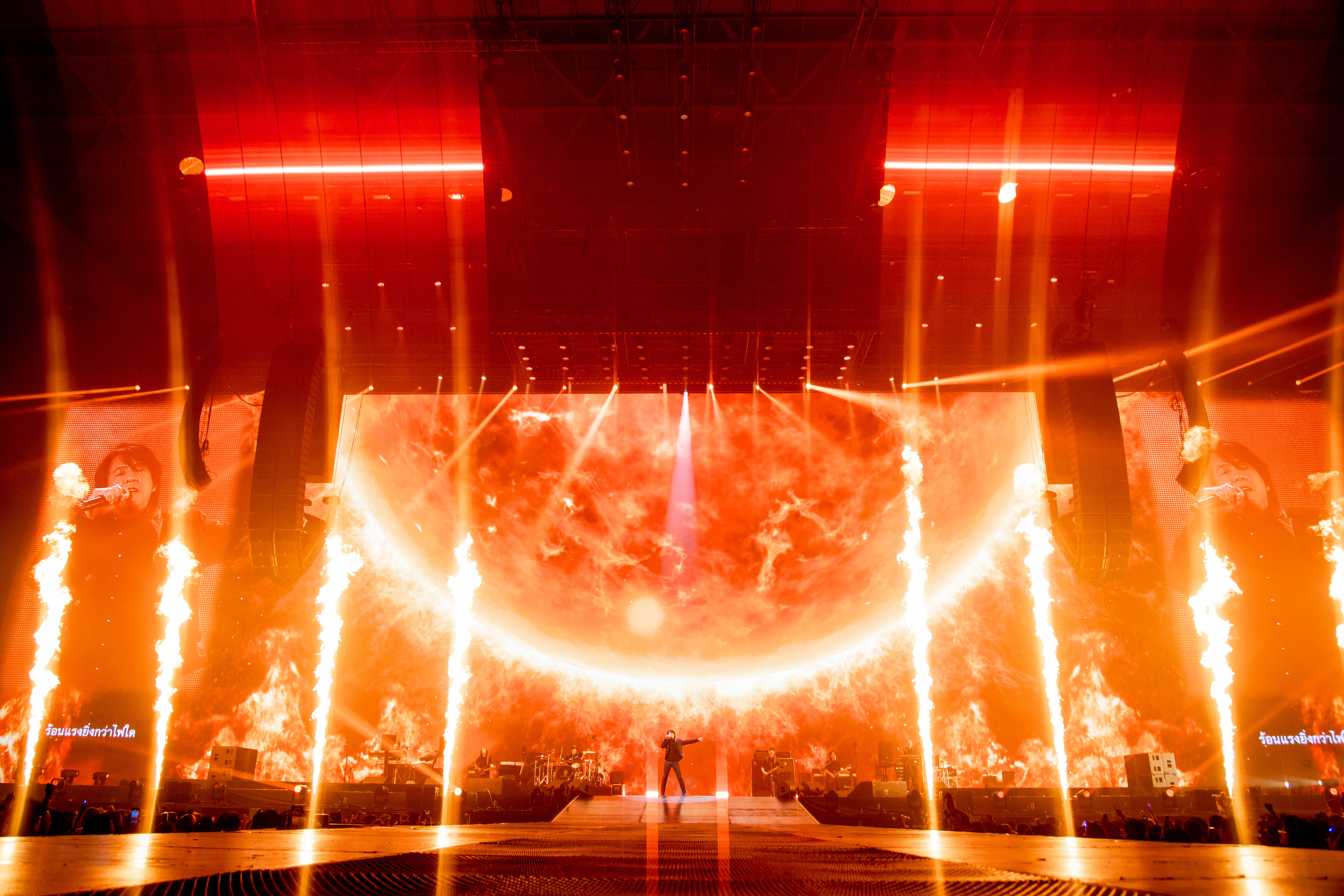 ความมันเริ่มขึ้น เมื่อ “หนุ่ย อำพล” ปรากฏตัวบนแท่นกลางเวที พร้อมสเปเชียลเอฟเฟ็กต์ไฟจริง และพลุไพโร สุดร้อนแรง ที่ถูกจุดติดขึ้นในแต่ละฝั่งของเวที ก่อนจะมาหยุดอยู่บนฝ่ามือของศิลปินตำนานร็อกมือขวา เป็นสัญญาณว่าความมันทะลุจุดเดือดจะเริ่มต้นตั้งแต่วินาทีนี้เป็นต้นไป