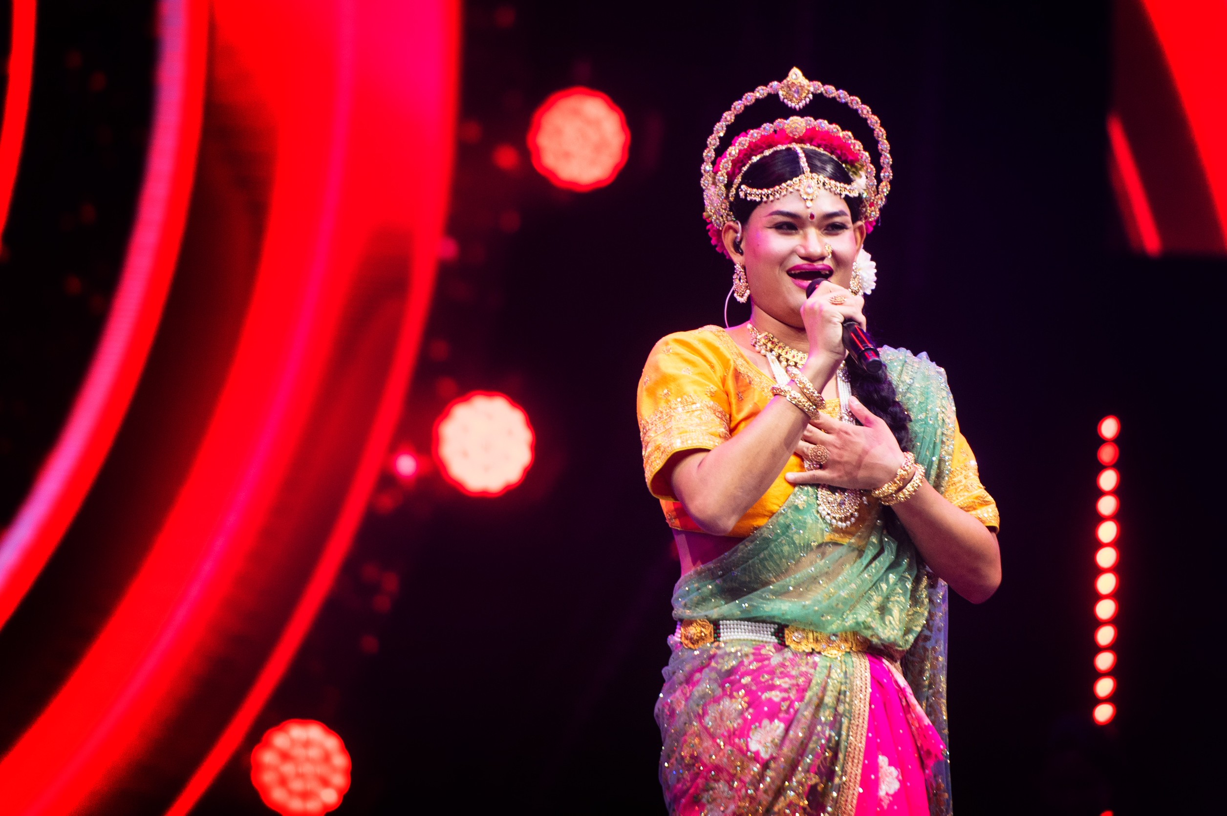 เปิดเวทีในเพลง รองูเข้าฝัน พร้อมด้วยลีลาการโยกย้ายส่ายเอวในชุดสาวภารตะ ทำเอาคนดูกรี๊ดกันสนั่น!! เมื่อผู้เข้าแข่งขันแต่งองค์ทรงเครื่องแบบจัดเต็ม แถมยังมุ่งมั่นใช้เสียงร้องเป็นตัวแทนบอกเล่าความฝัน และตัวตนที่ภาคภูมิใจ มาด้วยแรงซัปพอร์ตจากเพื่อน ๆ และครอบครัวอย่างเต็มที่ โดย หมีพูห์ ภูตะวัน ศิริรักษ์ นักเรียนนายสิบตำรวจ วัย 25 ปี สังกัดกองบังคับการฝึกอบรมตำรวจกลาง ศาลายา เล่าให้ฟังว่า “ผมชอบอาชีพราชการมากครับ รู้สึกว่าอาชีพนี้เป็นอาชีพที่มั่นคง และอีกอย่างคือผมชอบคนในเครื่องแบบครับ ถึงแม้ผมจะเป็น LGBTQIAN+ เมื่อได้เข้าไปอยู่ในสังคมนักเรียนนายสิบตำรวจที่มีแต่ผู้ชายแมน ๆ แต่ด้วยความที่โลกพัฒนาไปไกล เพื่อน ๆ ต่างยอมรับในตัวตนของเรา และเราก็เป็นสีสัน สร้างความสนุกสนานให้กับเพื่อน ๆ ในกองร้อย เวลามีกิจกรรมพิเศษ ผมก็ได้เป็นตัวแทนในการแสดงความสามารถต่าง ๆ ล่าสุดเพิ่งได้รับรางวัลรองชนะเลิศอันดับ 1 นางนพมาศ มาครับ เห็นอย่างนี้สวยพอตัวครับ ฝากทุกคนเป็นกำลังใจในการแข่งขันในรอบต่อ ๆ ไปของผมด้วยนะครับ”