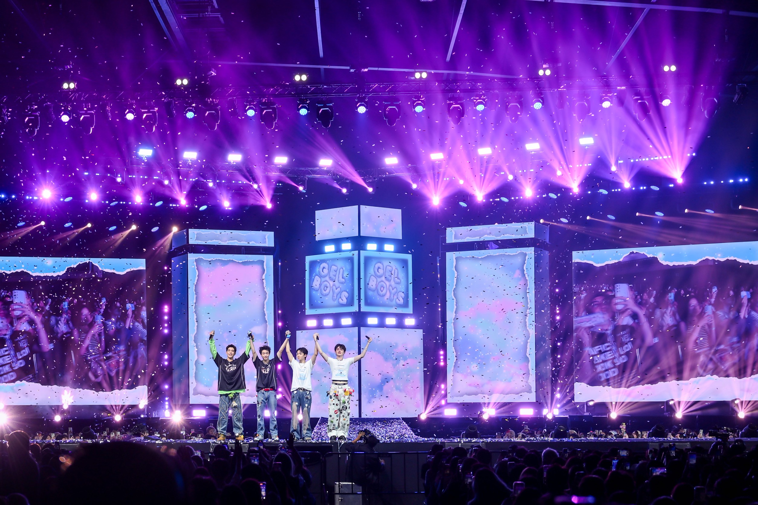 เปิดเวทีพร้อมปลุกเอนเนอร์จีชาวด้อม ‘GELBIE’ ด้วยเพลง “กั๊ก” (No-status Status) เพลงประกอบ ซีรีส์เพลงแรกที่ทำให้ทุกคนรู้จัก GELBOYS ต่อด้วยโชว์เพลง LOVEGELS กับท่าเต้นที่น่ารักเกินต้าน จนแฟน ๆ ใจละลายกันทั้งฮอลล์! จากนั้นเข้าสู่ช่วง Close Fan ช่วงทอล์กที่ทำเอาฮากันหนักมาก กับการเปิดรูปลับ ๆ และเรื่องลับ ๆ ที่สุดของความเอ็กซ์คลูซีฟ พร้อมแคปเจอร์โมเมนต์ที่เปิดเผยที่นี่ที่แรก!! จากนั้นมาเอ็นจอยกันต่อกับพาร์ต GELBOYS PLALIST : SOLO Performance งานนี้แต่ละคนได้โชว์โซโล่ในเพลงของตัวเอง และได้ คอลแลปกับเพื่อน ๆ ทำให้เกิดเป็นคู่เคมีพิเศษขึ้นมา และด้วยดนตรีที่ถูกรีอาเรนจ์ขึ้นมาใหม่ ยิ่งช่วยเพิ่มกิมมิกให้โชว์ในพาร์ตนี้มีความลงตัวมากขึ้น เริ่มกันด้วยเพลง ‘วันนี้ปีหน้า (9PM) ที่ “ไป๊ป-นิว” ควงคู่กันออกมาโชว์กรูฟท่าเต้น และการร้องในสไตล์ R&B ผสมผสานกับท่อนแรปที่นิวแต่งขึ้นมาเอง แถมงานนี้ ไป๊ป ยังขอโชว์สกิลโคโรกราฟท่าเต้นเป็นภาษามือพร้อมกับครีเอทท่อนแรปตอนท้ายเป็นภาษาอังกฤษ เพื่อเอาใจอินเตอร์แฟน อีกด้วย จากนั้นมาเพลิดเพลินกันต่อในเพลง ‘ไอ้บ้า (Gu ja Crazy)’ ร้องโดย “พีเจ-เลออน” งานนี้ พีเจ ขอทุ่มสุดใจ ไปซุ่มซ้อมเรียนเป่าแซกโซโฟน เพื่อใช้ประกอบเพลงนี้โดยเฉพาะ!! ทำเอาแฟน ๆ ถึงกับเคลิบเคลิ้มไป ตาม ๆ กัน ต่อด้วยเพลงไม่เท่าเดิม ที่ “เลออน-ไป๊ป” ออกมา Dance Battle โชว์พาร์ต Sexy Dance จากนั้นมาสนุกกันต่อกับโชว์สุดสเปเชียล “เลิกกั๊กแล้วรักก่อน” (RED FLAG) เพลงฮิตสุดไวรัล ที่พอขึ้นท่อนอินโทร ของเพลง ทุกคนก็ต่างพร้อมใจทั้งร้องทั้งเต้นตาม สนุกสนานกันทั้งฮอลล์