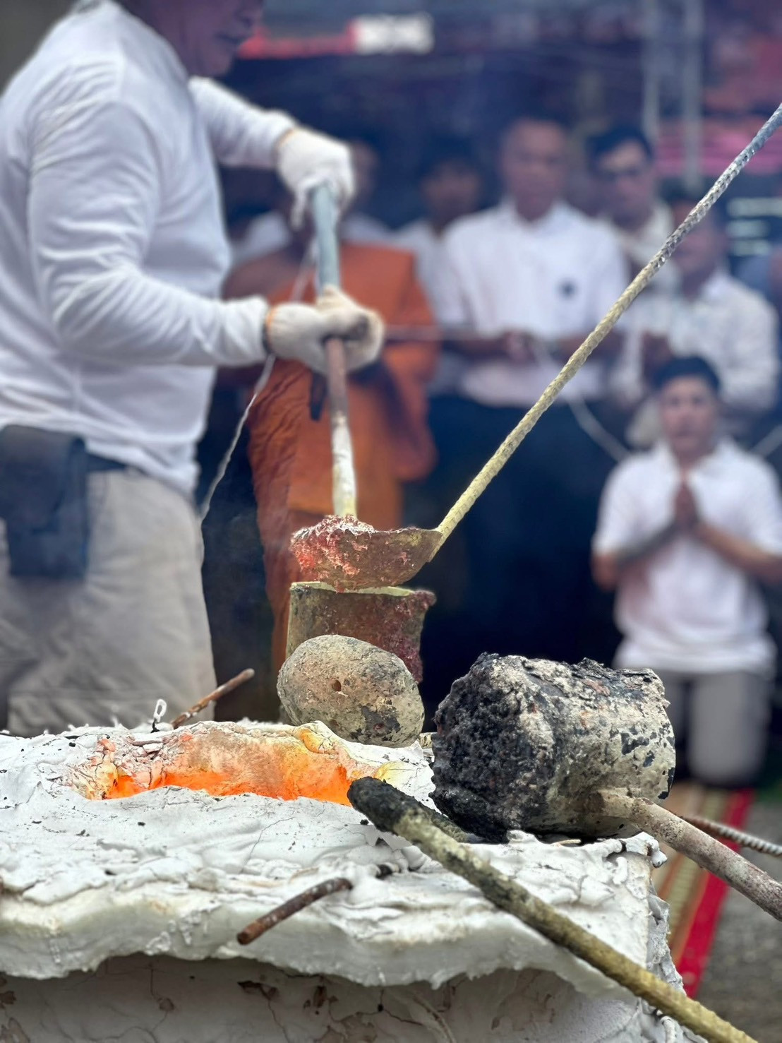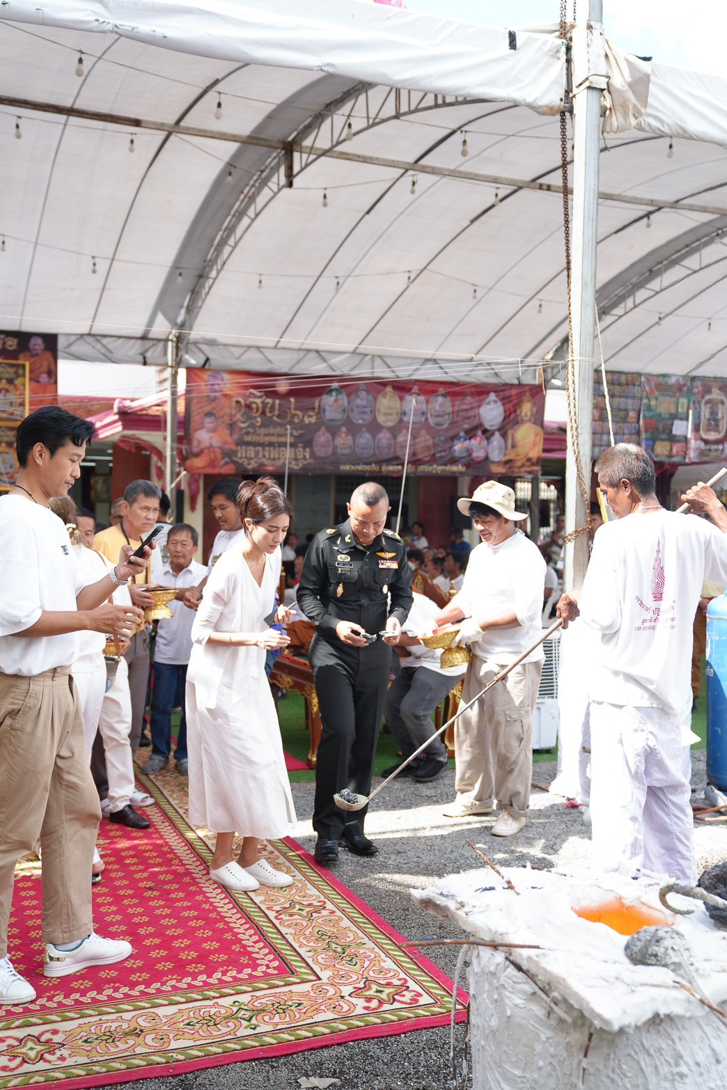 โดยครั้งนี้ได้อัญเชิญพระเกจิทั่วฟ้าเมืองไทย อาทิ ลป.มหาศิลา สิริจนฺโท, พระมหาต่อ, พระราชาคณะชั้นต่าง ๆ พระเถราจารย์ เกจิอาจารย์ที่มีชื่อเสียงในปัจจุบันมากมายมาร่วมปลุกเสก ฤกษ์ดีพิธีเริ่มในเวลา 13.39 น. ความปังของพิธีในครั้งนี้ก็คือ การรวบรวมเอามวลสารทั้งแผ่นชนวนมวลสารพ่อแม่ครูบาอาจารย์มากมาย แผ่นชนวนมวลสารหมื่นยันต์พันพระคาถา ผานไถเก่า แร่เหล็กเปียกดิบ ทองล้นเบ้าหล่อพระพุทธรูปศักดิ์สิทธิมากมาย ตะปูสังฆวานร แผ่นสังกะสีหลังคาโบสถ์เก่า และอื่น ๆ อีกมากมาย โดยนำมาเป็นมวลสารเข้าเตาหลอมเพื่อสร้างเหรียญกฐิน 2568 เหรียญหลวงพ่อแจ้งรุ่นแรก รุ่นเศรษฐีลูกพ่อแจ้ง และตะกรุดลูกปืน หลวงพ่อแจ้ง รุ่นแรก โดยพิธีครั้งนี้ไม่ว่าจะเหล่าดารา-นักแสดง เซียนพระ คนดังต่างๆ ทุกคนตั้งใจร่วมพิธีกันทุกขั้นตอน ตั้งแต่การสวดมนต์ การปักธูปที่โต๊ะหมู่บูชา รวมไปถึงการนำมวลสารมาเข้าเตาหลอมรวม และเป็นครั้งแรกของวัดและที่โคราชสำหรับการปั๊มเหรียญนำฤกษ์ที่วัดแจ้งใน โดยในพิธีรับรู้ได้ถึงความขลังจนขนลุกกันเลยทีเดียว รวมถึงพลังศรัทธาจากญาติโยมที่ศรัทธาบารมีหลวงพ่อแจ้งมารวมตัวกันที่วัดแจ้งในโคราช หลายร้อยหลายพันคน