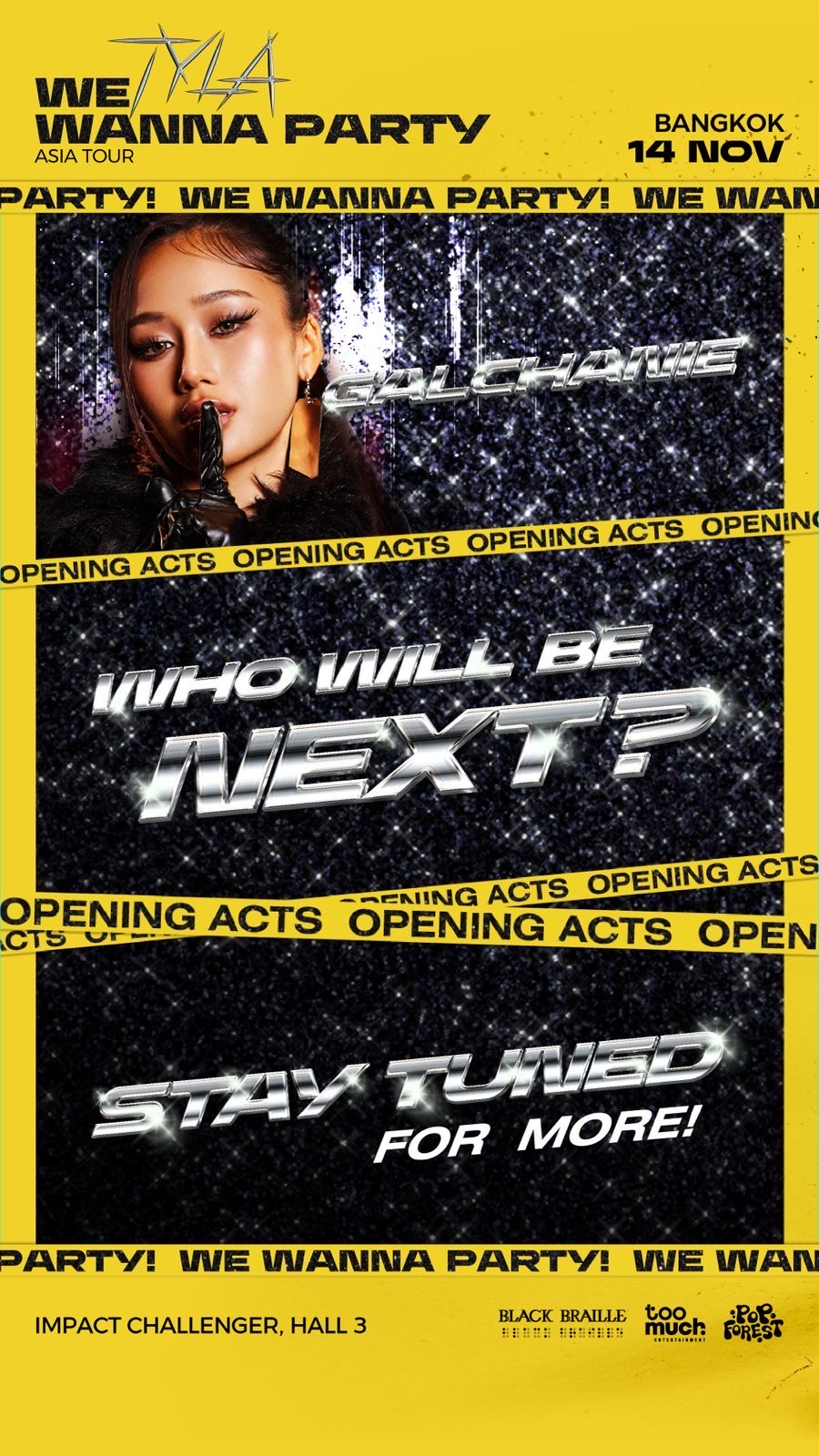 ความสำเร็จของอัลบั้ม Tyla ที่เต็มไปด้วยไวบ์ความบันเทิงที่แปลกใหม่ ทำให้ TYLA WE WANNA PARTY ASIA TOUR กลายเป็นอีกแลนด์มาร์คความสนุกที่คนทั่วโลกรอคอย และคราวนี้ TYLA WE WANNA PARTY ASIA TOUR in Bangkok ก็ได้เกิดขึ้น และจะเป็นปาร์ตี้ที่สมการรอคอยทุกคน การันตีว่าปาร์ตี้ครั้งนี้จะเสิร์ฟความประทับใจแบบเต็มอิ่มให้กับทุกคน