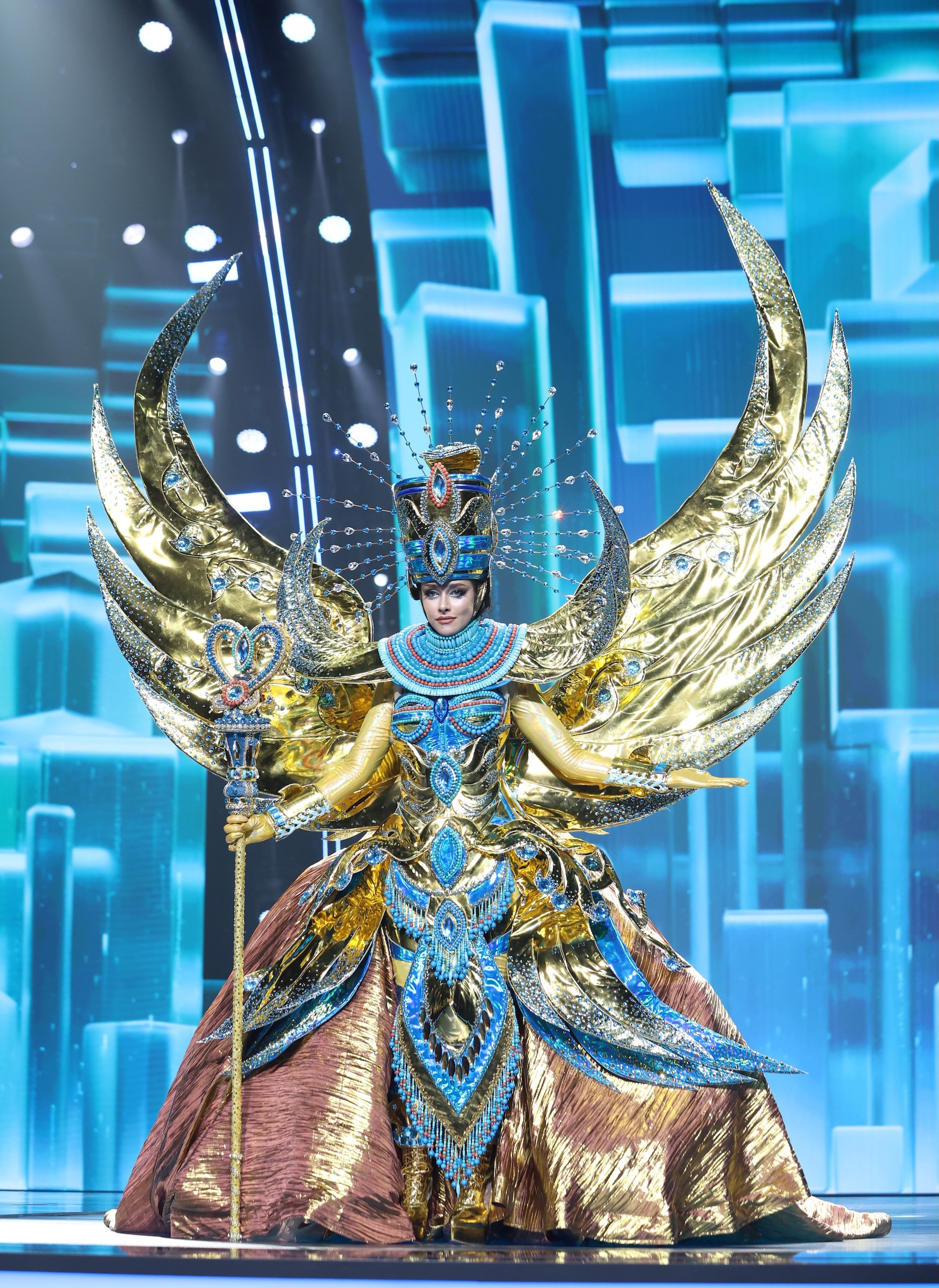 รอบชุดประจำชาติ (National Costume Competition) เป็นอีกรอบที่แฟนนางงามตั้งตารอคอย บอสณวัฒน์ อิสรไกรศีล ประธานกองประกวด Miss Grand International ทุ่มงบเนรมิตเวทีขนาดใหญ่ แสง สี เสียง และโปรดักชั่นกระหึ่มสมความเป็น“แกรนด์” เปิดความสนุกของค่ำคืนสุดอลังการด้วย เมลิชา ลิน  (Melisha Lin) รองอันดับ 5 Miss Grand International 2024 และ แชมป์ สกุล ลิมปภานนท์  เผยโฉม 77 สาวงามในชุดประจำชาติ หลากหลายรูปแบบ ส่งเสริมอัตลักษณ์ วัฒนธรรมพื้นถิ่นของแต่ละประเทศ ผ่านฝีมือดีไซเนอร์ประจำประเทศ ได้อย่างงดงาม สร้างความตื่นตาตื่นใจให้กับผู้ชมในฮอลล์ และที่กำลังรับชมผ่านทาง Youtube : Grand TV ทั่วโลก รวมถึงแขกผู้มีเกียรติและคณะกรรมการ  บอสณวัฒน์ อิสรไกรศีล ,คุณเทเรซา ชยวิสุทธิ์ รองประธานมิสแกรนด์ฯ , ซีเจ คริสติน จูเลียน โอเปียซา Miss Grand International 2024 ลูเซียนา ฟุสเตอร์  Miss Grand International 2023 , อิซาเบลลา เมนิน  Miss Grand International 2022 ฯลฯ คัดเลือกผู้ผ่านเข้ารอบ 10 ชุด รวมกับคะแนนโหวตจากแฟนนางงามอีก 10 ชุด จากนั้นประกาศผลผู้ชนะอย่างเป็นทางการในค่ำคืนวันที่ 18 ตุลาคม 2568 เวลา 19.00 น. ที่ MGI Hall