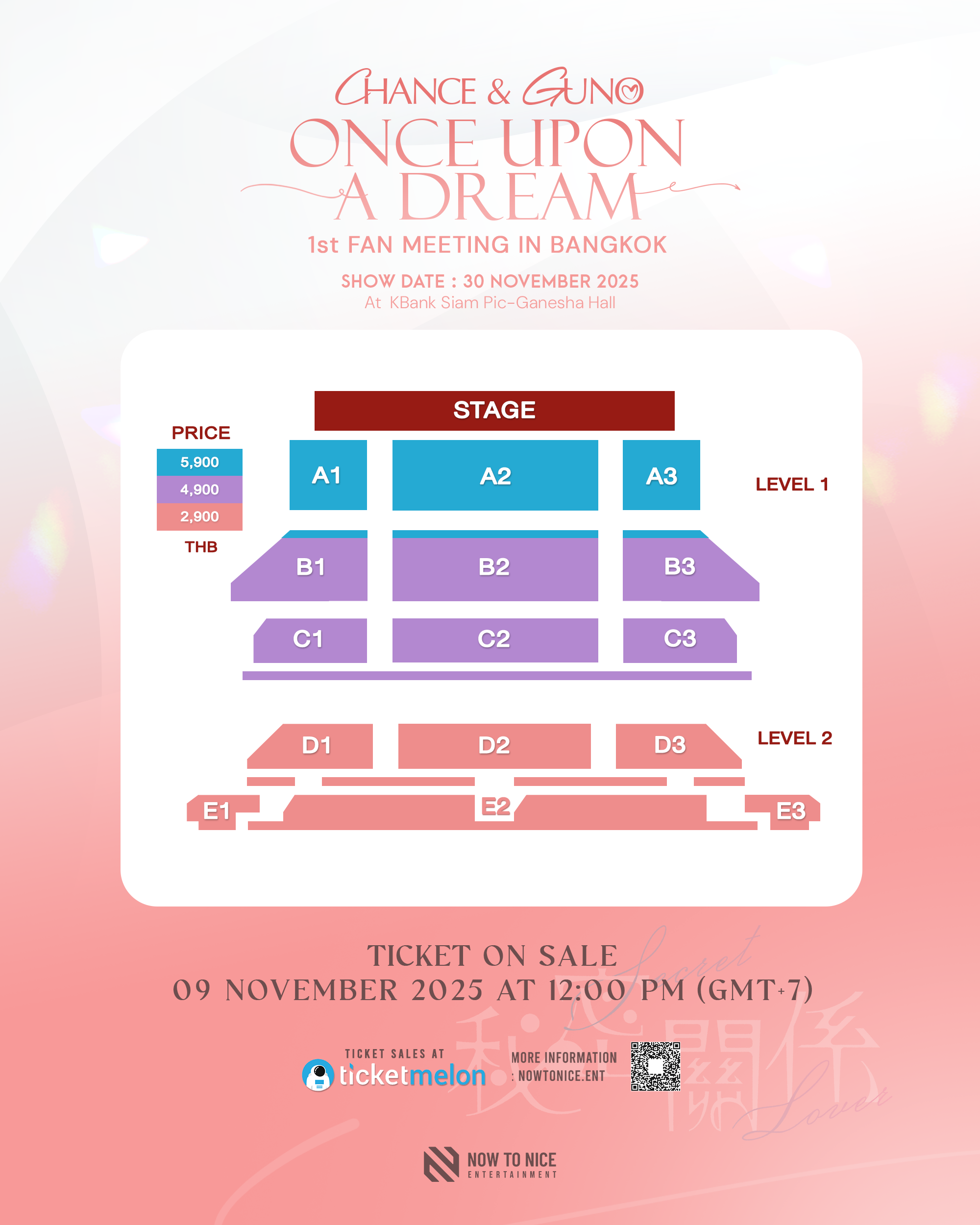 เตรียมตัวให้พร้อมแล้วไปเจอกันที่งาน Chance & Guno ONCE UPON A DREAM 1st Fan Meeting in Bangkok เพื่อพบกันความอบอุ่นราวกับท่องอยู่ในดินแดนแห่งความฝันไปด้วยกัน ในวันที่ 30 พฤศจิกายน 2568 ณ โรงละครเคแบงก์สยามพิฆเนศ ชั้น 7 สยามสแควร์วัน